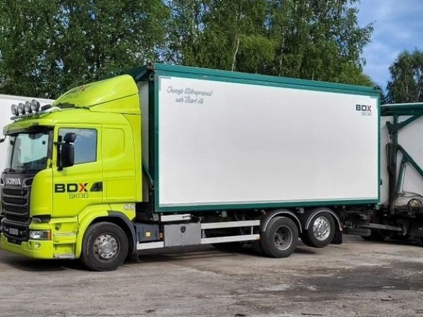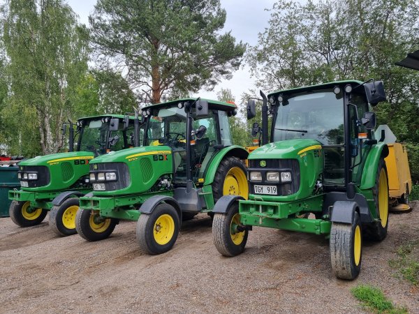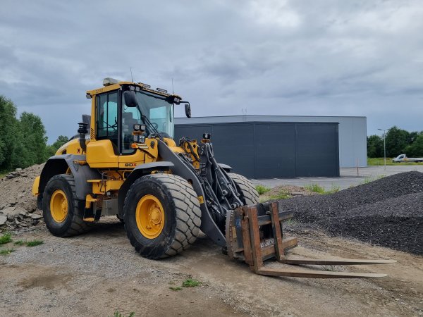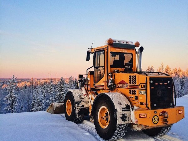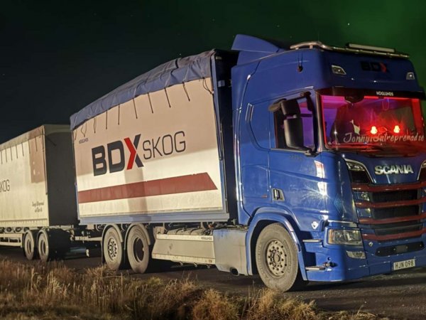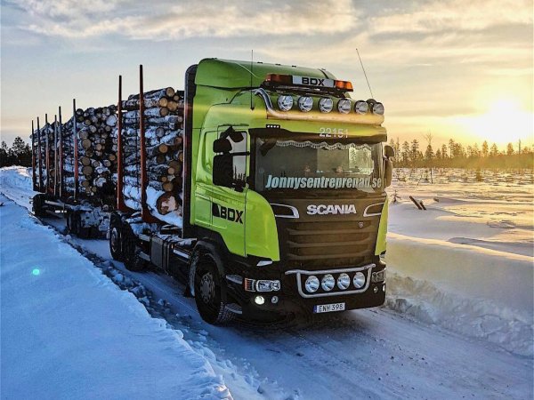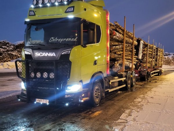 Utrustad med timmerrede och kran samt 4-axligt timmersläp vintertid. Grusrede och grussläp under sommarhalvåret.